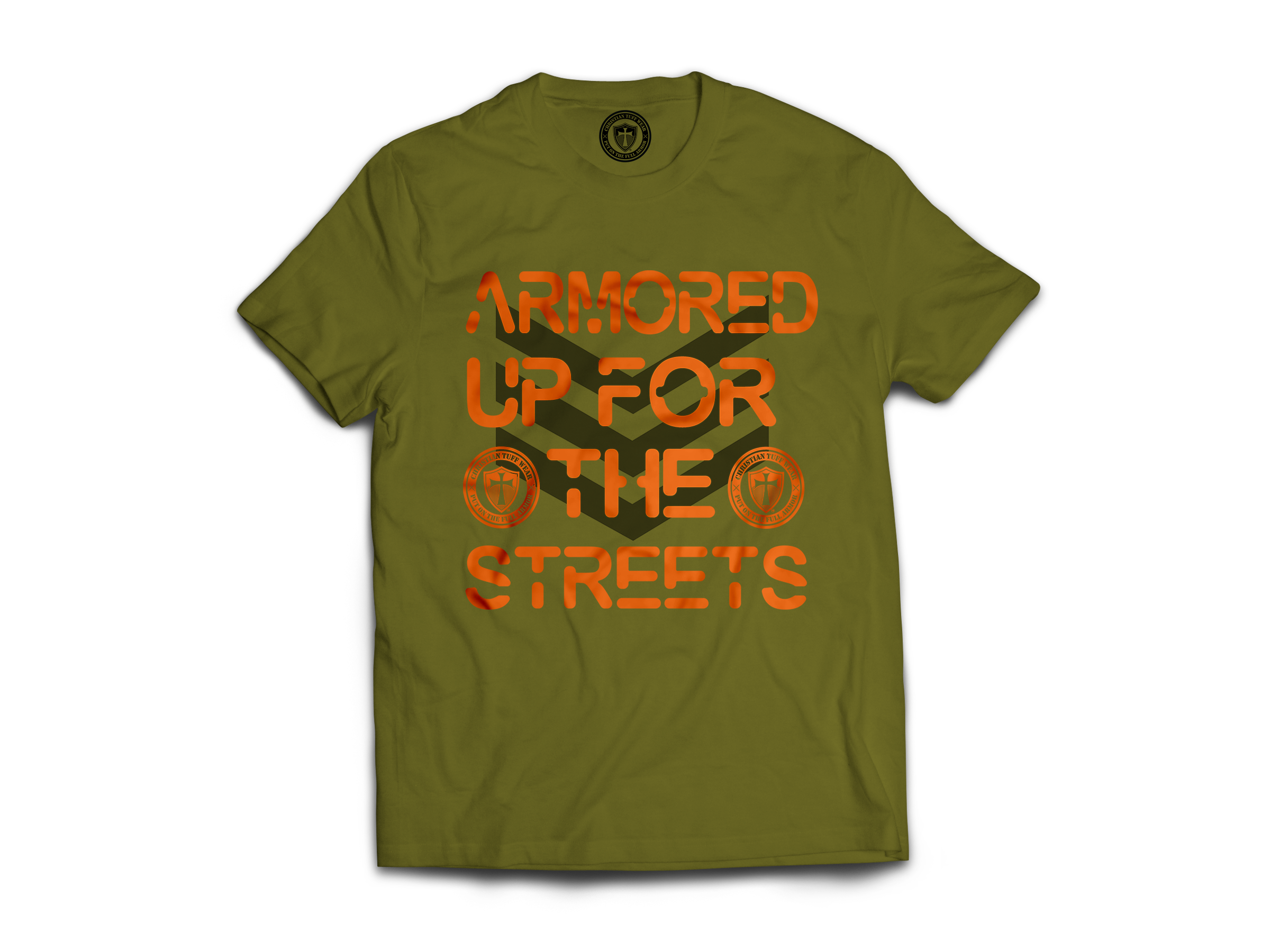 What better way to live out this scripture than with our army green ‘Armored Up For The Streets’ T-Shirt? Every time you put on this shirt, imagine yourself putting on the belt of truth, the body armor of God’s righteousness, the shoes of peace, the shield of faith, the helmet of salvation, and the sword of the Spirit.